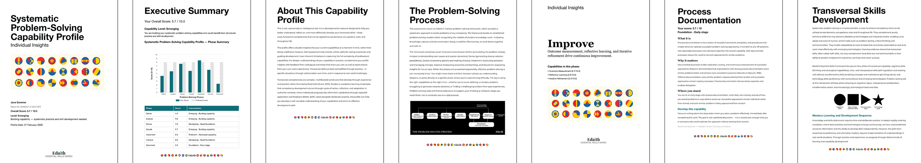 Purchase Capability Profiles with volume pricing. Each team member completes the 15-minute scenario-based assessment independently. Every person receives a personalised PDF Capability Profile delivered directly to their inbox — showing their proficiency level across 21 competencies and one targeted development action per competency calibrated to where they are now.